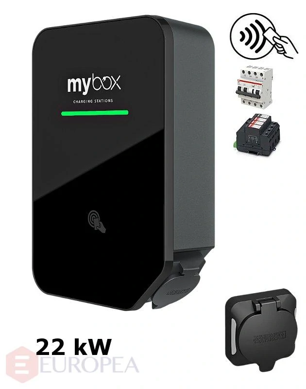 MyBox PLUS 1 x 22 kW, wifi/LAN, zásuvka, RFID, komb.istič, prep.ochrana